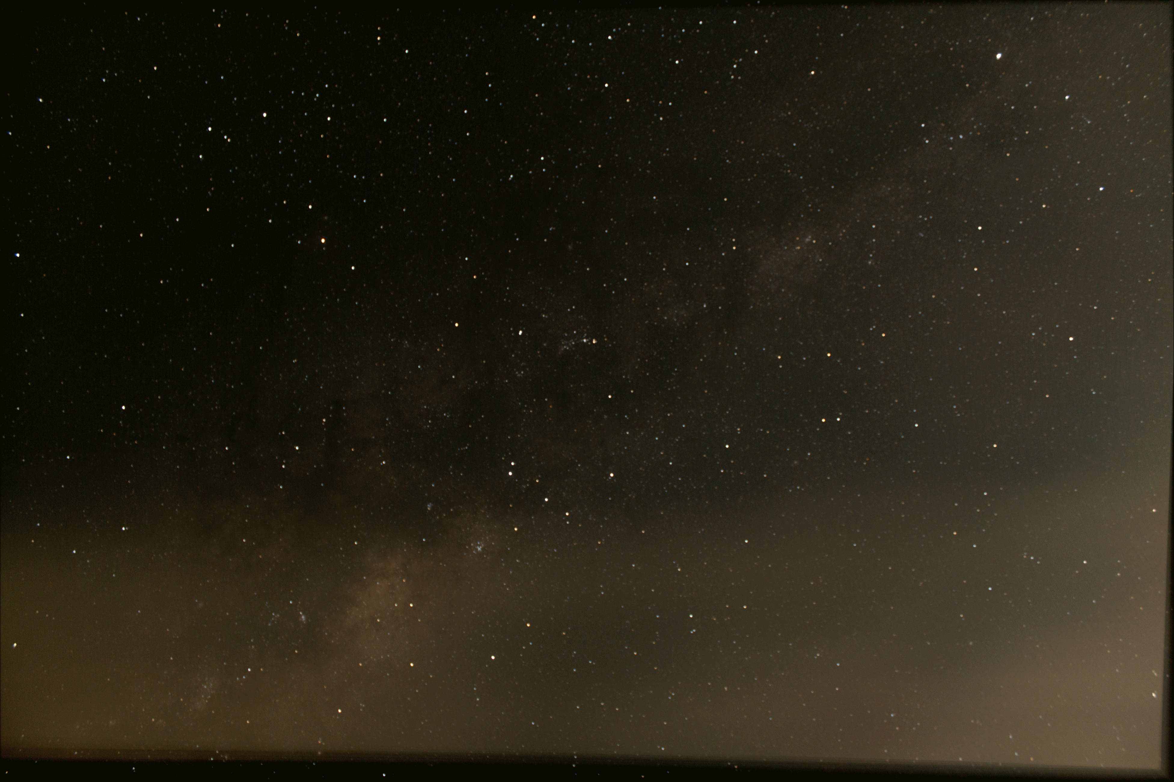 The first astro picture I took with a DSLR. The milky way (with clouds in the way...)